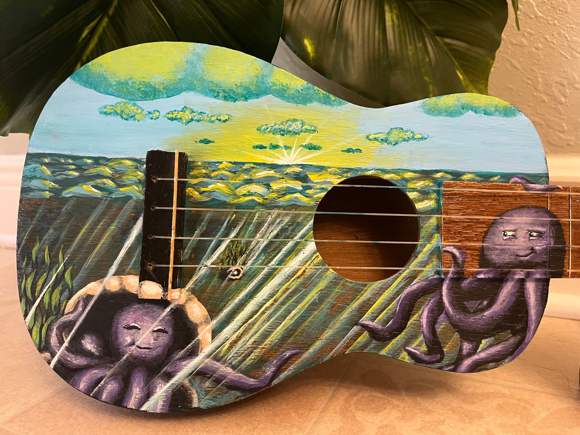 Hand-Painted Acoustic Guitar/ ukelele – Ocean & Octopus Design | Unique Art Instrument & Home Décor